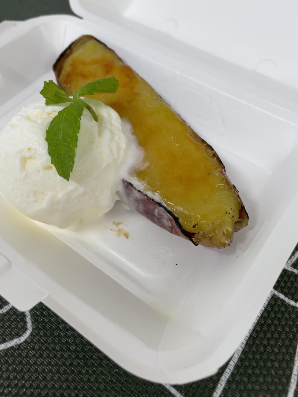 冷たい焼き芋の表面にパリパリのブリュレをコーティング。バニラアイスとの相性はバッチリ✌️