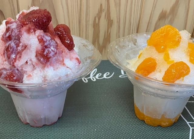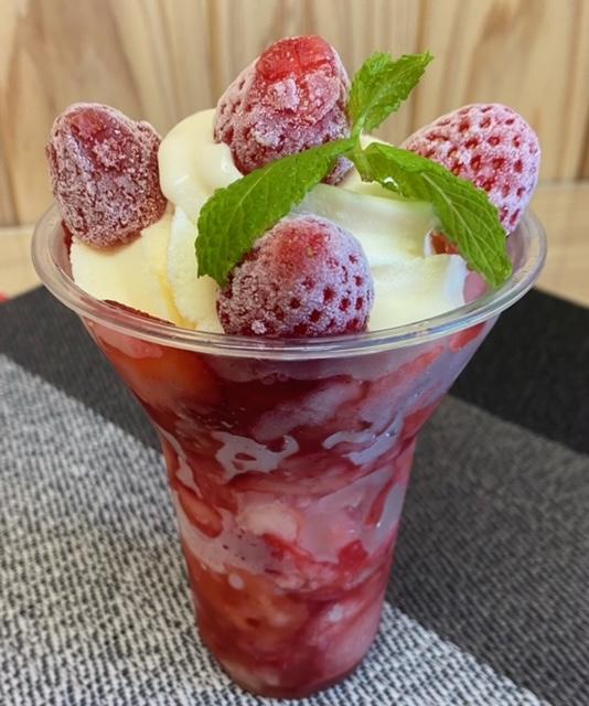 夏本番❗丸敏フルーツで冷たいおいしいものをみつけて下さい。ふわふわいちご🍓かき氷🍧三ヶ日みかん🍊かき氷🍧サクサクけずりいちごソフト😋新メニュー密芋紅はるかのブリュレ‼️いちご🍓のスムージー‼️定番の冷凍フルーツもあります。